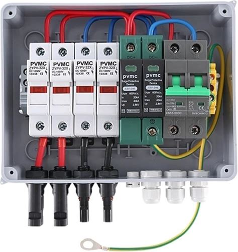 VEVOR Pv Combiner Box 4 String Solar Combiner Box With 10A Rated Current Fuse 63A Circuit Breaker Lightning Arrester And Solar Connector Abs Plastic