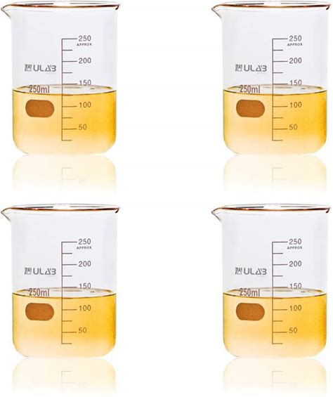 ULAB Scientific Glass Beaker Set, Vol. 250Ml, 3.3 Borosilicate Griffin Low Form With Printed Graduation, Pack Of 4, UBG1015