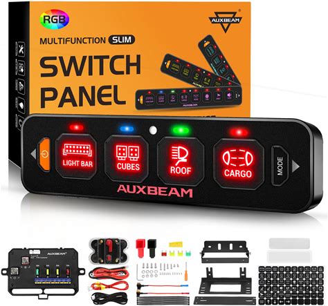 Auxbeam 4 Gang Slim Switch Panel RGB AS-R40 Automatic Dimmable Switch Panel With Toggle Momentary Pulsed Off Backlight Unique Patented Design Control