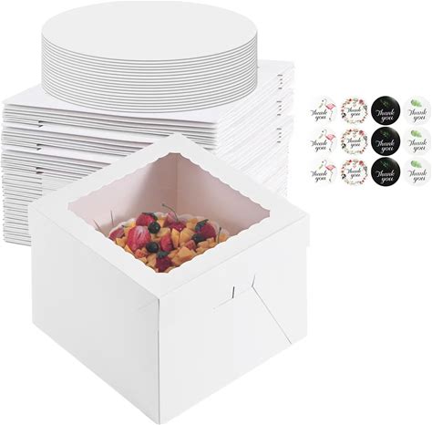 DOYIDE 25Pcs 8X8x8 Inch Cake Boxes, White Bakery Boxes With Window, Square Disposable Cake Containers Package For Cookies Pies Bake Decorating