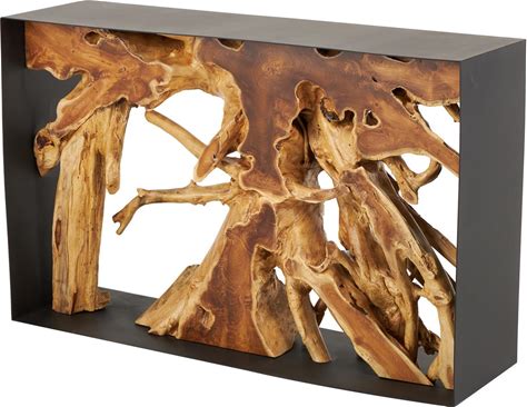 UMA Brown Teak Wood Handmade Live Edge Tree Trunk Living Room Console Table, 48" X 16" X 32" | 11025