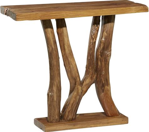 UMA Brown Teak Wood Handmade Live Edge Tree Trunk Living Room Console Table, 36" X 12" X 32" | 17934