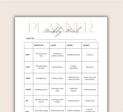 Daycare Weekly Menu Template Editable Canva Meal Planner Print