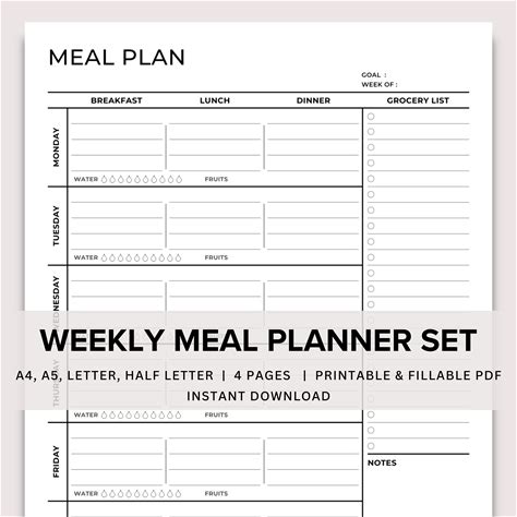 PDF Downloadable Printable Weekly Meal Plan | Simple Design | Easy To Use | Template | Meal Planner | Diet Planner