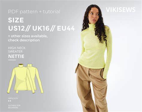 Nettie High Neck Sweater Digital Pattern Pdf Sewing Pattern With Tutorial Size US 12 UK 16 EU 44