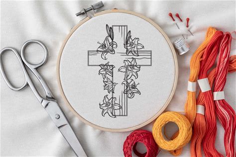 Floral Cross Pattern Embroidery, Religious Cross Hand Embroidery, Cross Hoop Design, Cross Pattern, Christian Cross Embroidery, 6 Sizes