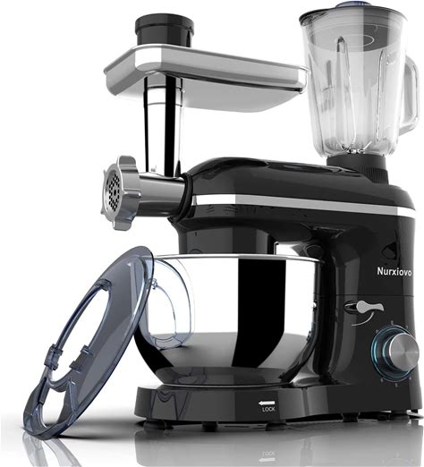 Nurxiovo Stand Mixer 850W 6 Speed Tilt-Head Kitchen Mixer With 6.5QT Mixer With Stainless Steel Bowl, Dough Hook Whisk Beater, Multifunction 3 in 1 Standing Mixers And Juice Extractor Black