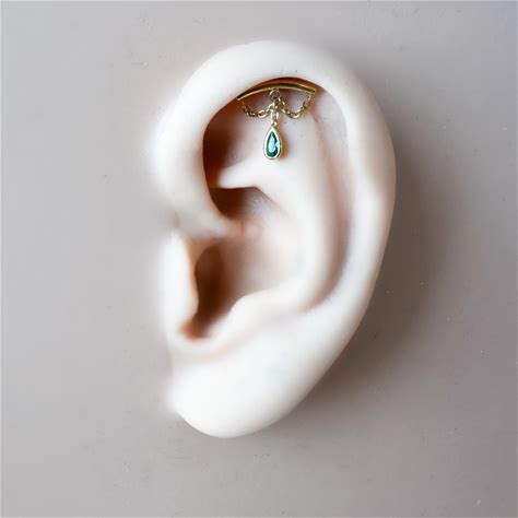 Dainty Hidden Helix Piercing 16G Titanium Camellia Emerald CZ Flat Piercing, Helix Labret, Cartilage Piercing, Chain Piercing 6mm 7mm 8mm