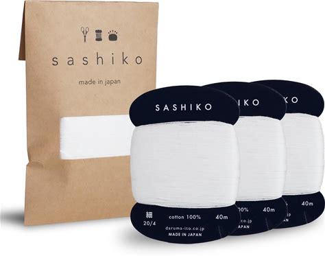 DARUMA Sashiko Thread Card Rolls Set Of 3 (43.7 Yards X3) - Sewing & Embroidery, Includes Instruction Manual And Gift Packaging (Thin, White)